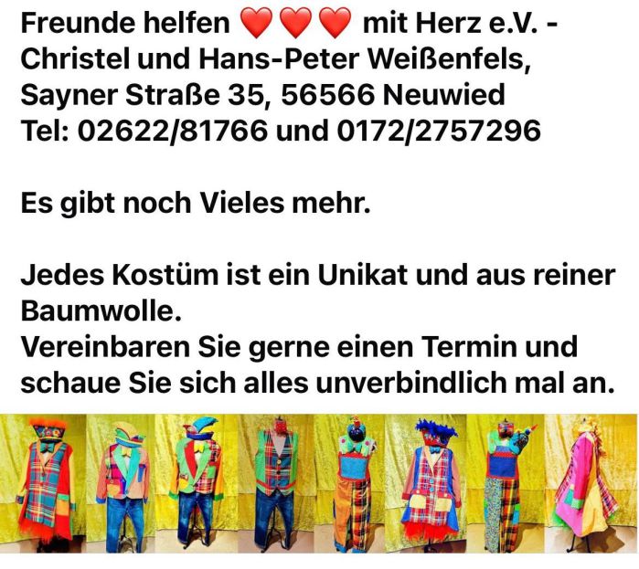 Eine Karnevalsgruppe aus Höhr-Grenzhausen hatte von unserem Clown-Kostüm-Verkauf für die Hilfsprojekte in Belarus gehört und kleidete sich bei uns ein. In einem netten Gespräch erzählten wir, was wir