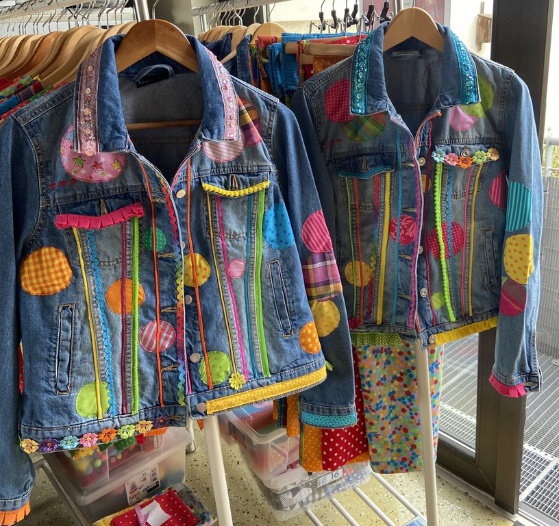 Diese Jacke läßt sich wunderbar mit unseren Kleidern und Ballon-Latzhosen kombinieren. Aber auch mit einer Jeans sieht sie klasse aus. Interessiert, dann machen Sie einen Termin aus, unter der
